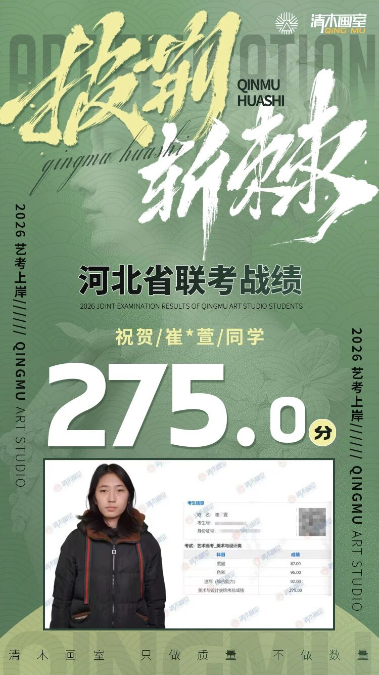 清木畫室始終秉持“質量至上,數量適中”的教學理念,在26屆美術聯考中再次以卓越戰績彰顯實力。